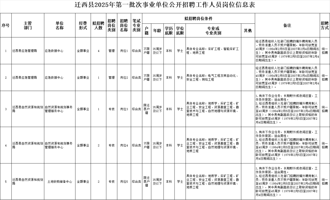 1.迁西县2025年第一批次事业单位公开招聘工作人员岗位信息表