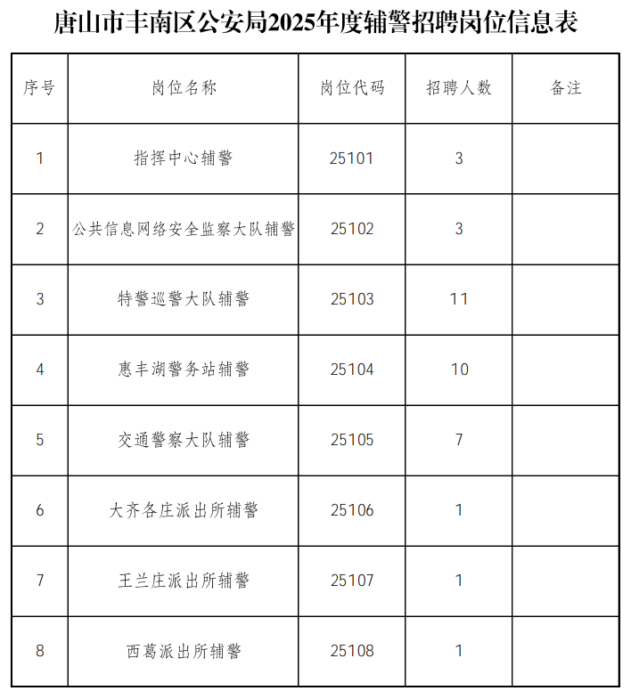 1.唐山市丰南区公安局2025年度招聘警务辅助人员岗位信息表