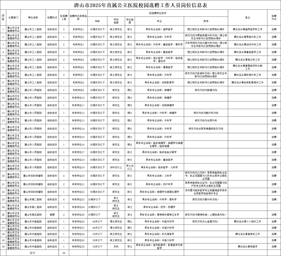 1.唐山市直属公立医院2025年校园选聘岗位信息表
