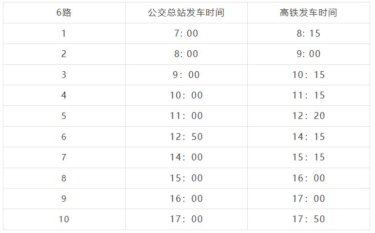 高铁始发时间:08:15,末班时间:17:50